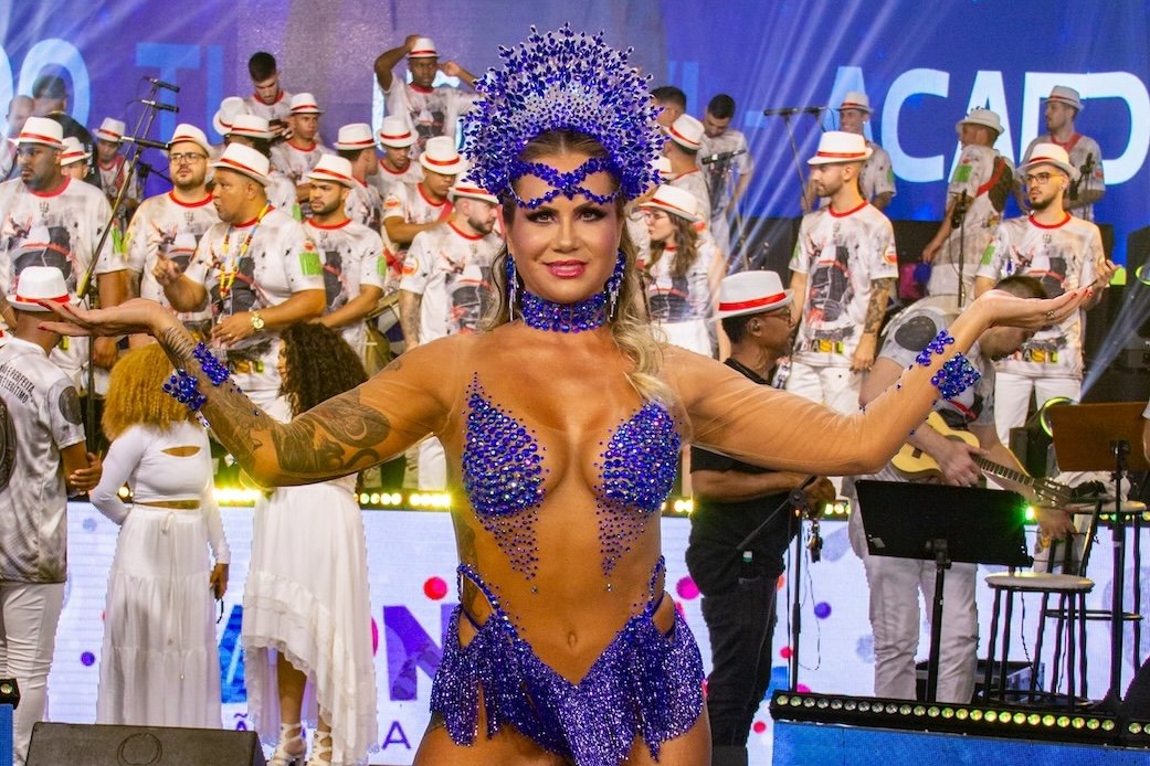 Energia e carnaval: Musa Isis Camargo arrasa na gravação do videoclipe do samba ‘Anti-Herói Brasil’